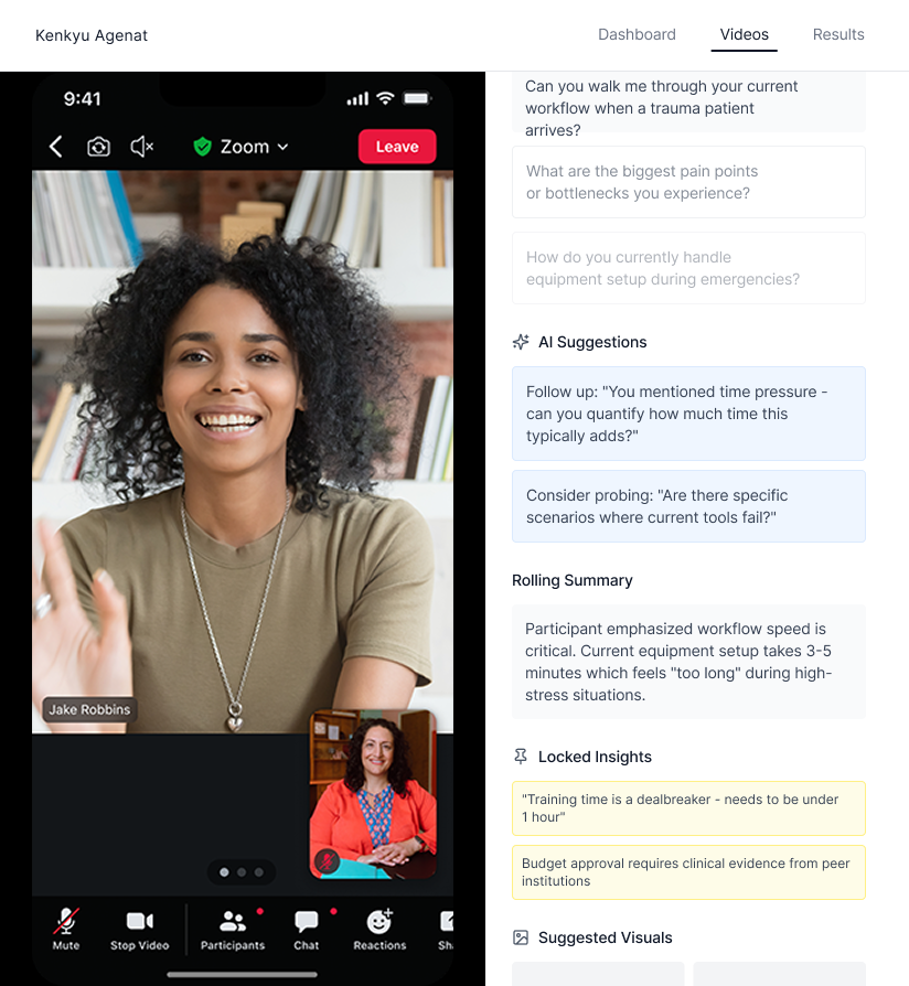 Use our AI research co-pilot to run deeper interviews and follow-ups.